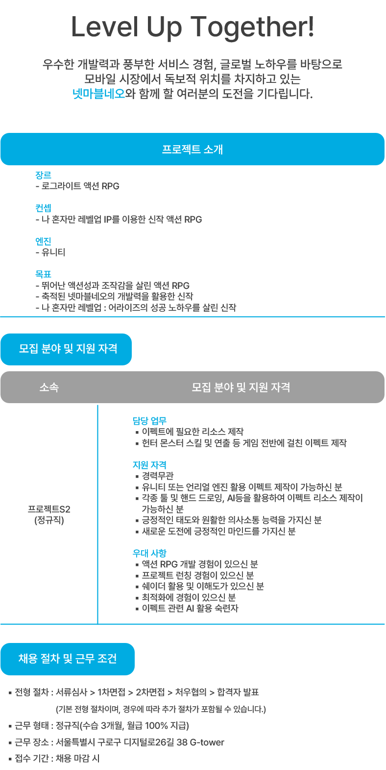 액션 RPG 개발 경험이 있으신 분