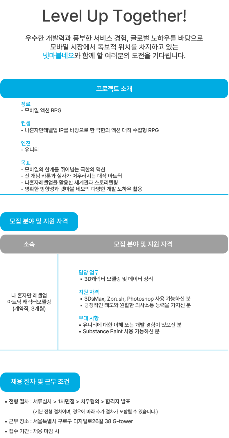 나 혼자만 레벨업 캐릭터모델링 담당 모집(계약직)